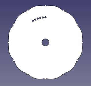 The rosettes below are designed by me from images of rosettes that I have found. The STL files are free to download by clicking on the appropriate image. Each of the rosettes is 150mm in diameter with a 14mm central hole and the phasing holes are 50mm from the centre and 3mm in diameter. These can be printed in PLA on a 3D printer.